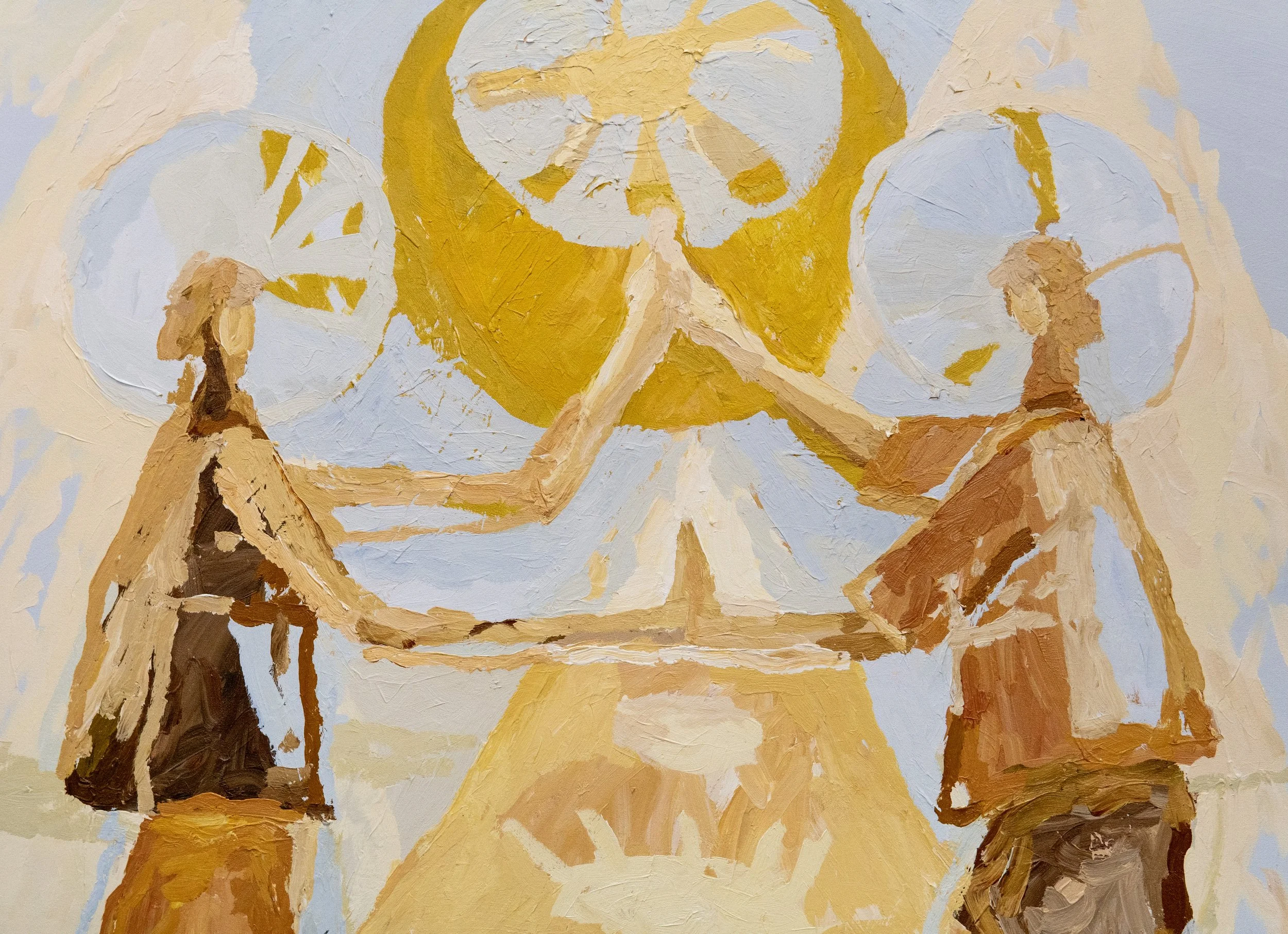 I am quietly receiving offers for two beloved pieces from my duo exhibition The Spirit of Life. They were painted on my residency in Joshua Tree, California and detail scenes of community, light and abundance.